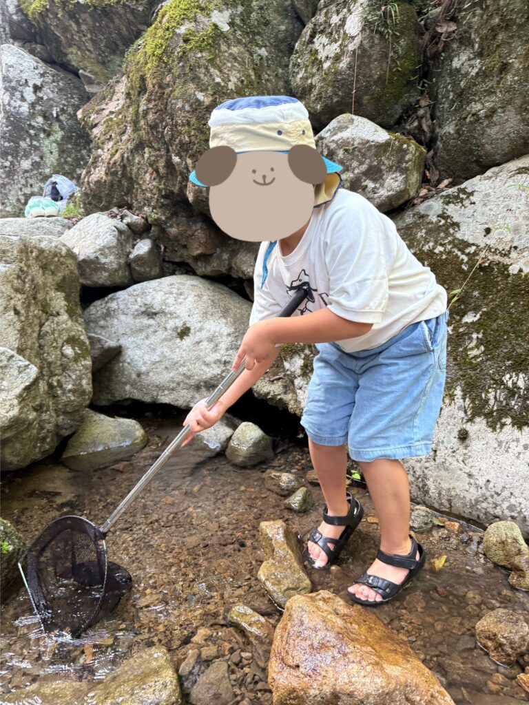 川では、たくさんのかにや魚を見つけ、みんな夢中で追いかけていました♪捕まえた生き物たちは「ばいばい!元気でね!」と声を掛けながら逃がしてあげていましたよ✨