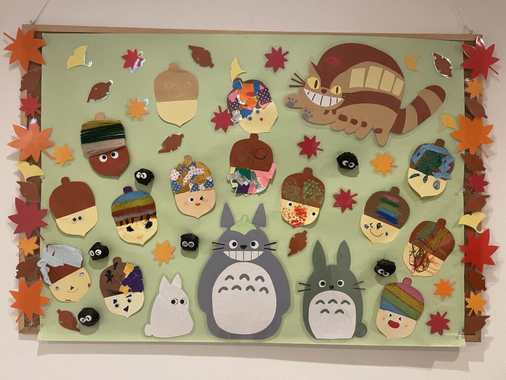 子どもたちの作品で、さくらんぼがすっかり秋の雰囲気に包まれました🍂