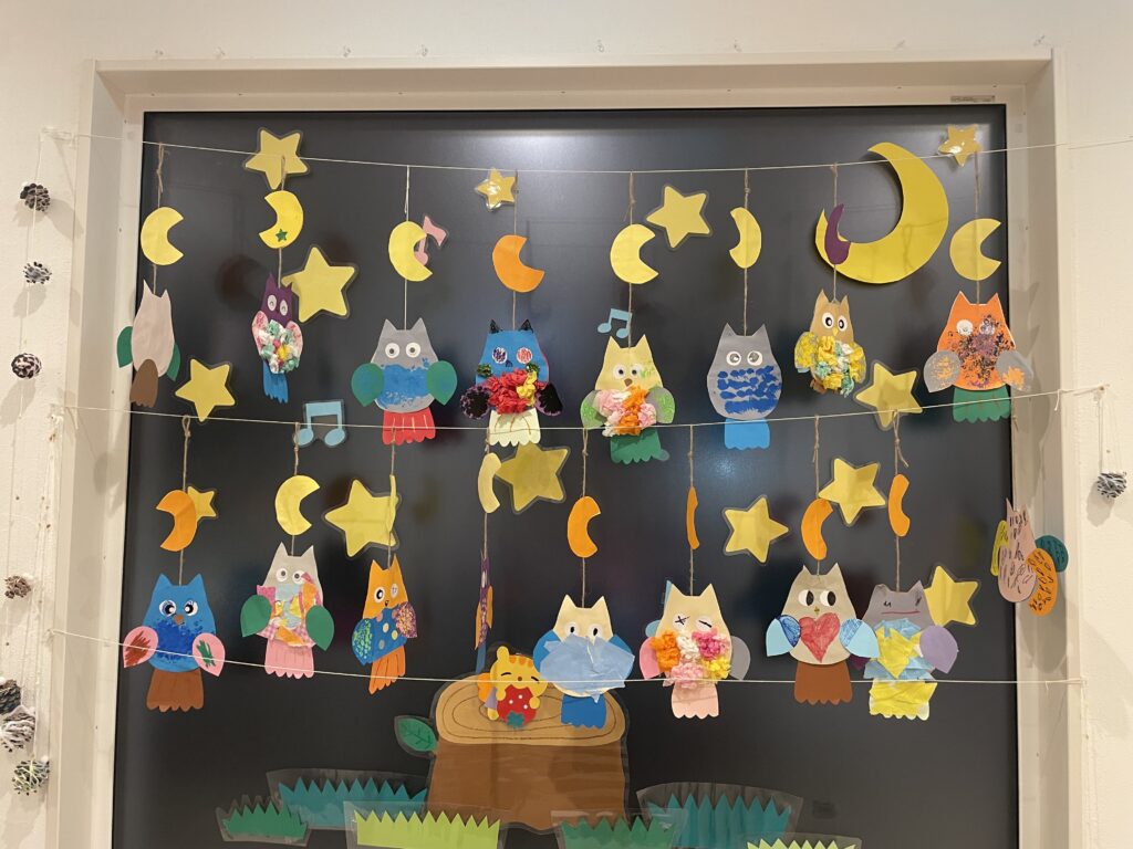 今月はふくろうのガーランドとどんぐりを作りました!