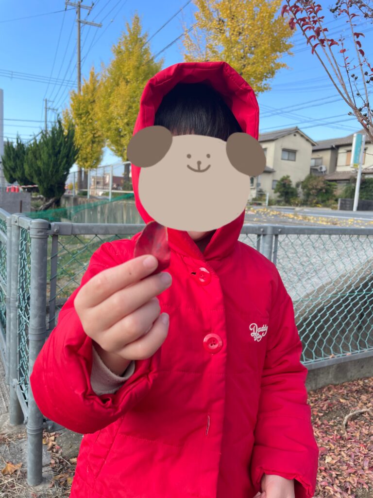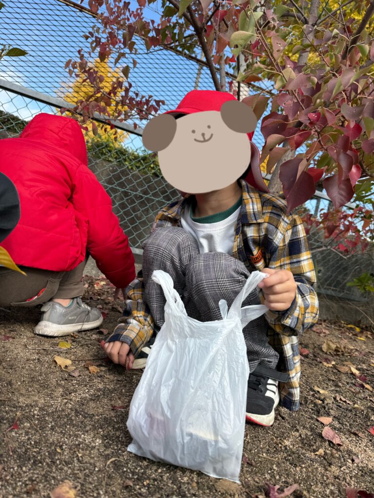 色や形の違う葉っぱを見つけて「きれい!」「穴が空いてる!」とたくさんの発見をしながら嬉しそうに拾う姿がありました💕